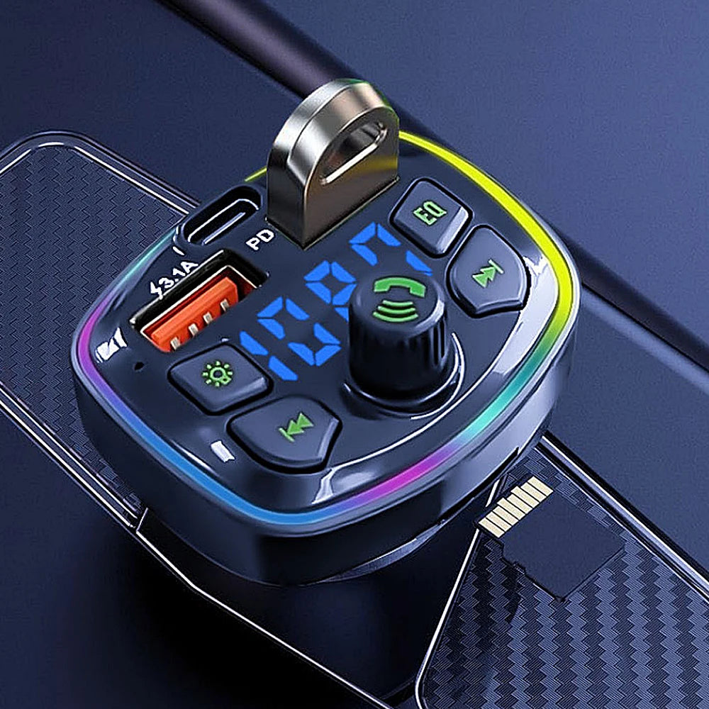 This transmitter also works as an MP3 player, playing music directly from a USB flash drive or SD card. Its dual 18W USB Type-C fast chargers let you quickly power up smartphones, tablets, or any compatible device without taking extra space. Plus, the LED backlight adds a modern touch and makes nighttime use easy and convenient.